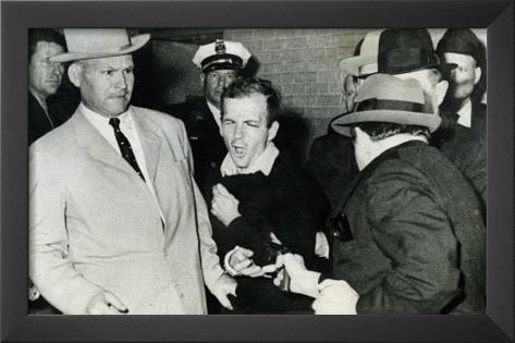 Jack Ruby shooting Lee Harvey Oswald. Ruby later told a pyschiatrist, "I was framed to kill Oswald."