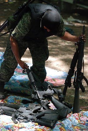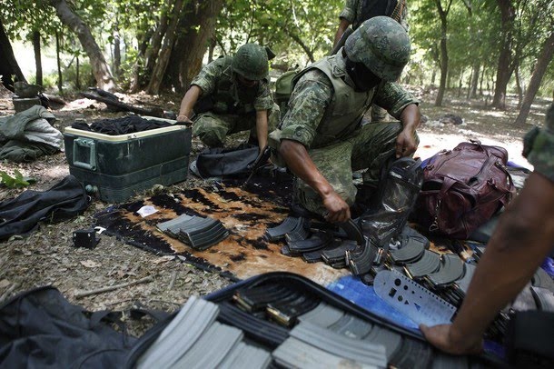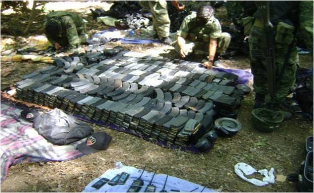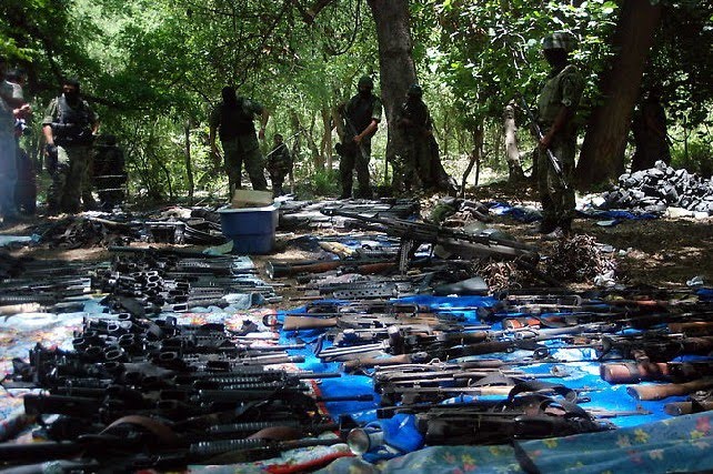 All types of assault weapons were among the cache.  Many were military grade weapons with plenty of ammo....
