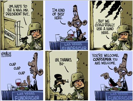 There are no pictures of the president watching a live feed from the drone that was above Benghazi the night Ambassador Stevens was killed. There are no pictures of the president monitoring the hours-long assault on the American diplomatic compounds there or the resulting firefight between the Islamists militia and U.S. security guards, Tyrone Woods and Glen Doherty, both of whom were killed early in the morning of September 12.