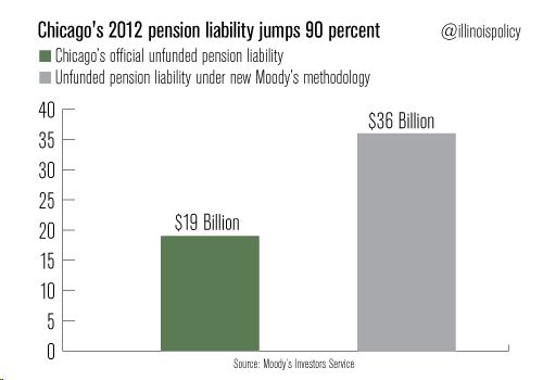 The rating agency has long critiqued pension funds' use of overly ambitious investment return targets that allow funds to understate their true pension shortfalls... Based on the new Moody's methodology, which uses more conservative assumptions, Chicago's 2012 pension shortfall jumps nearly 90%, to $36 billion...
