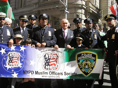 (Now... ain't that nice.  It seems it's all about Morsi.  New York City Police Commissioner Ray Kelly shaking hands [unwittingly] with a Muslim Brotherhood supporter wearing a yellow shirt as a demonstration of unity.)