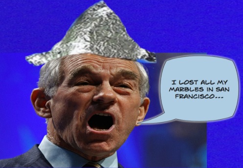 (Ah yes, The perpetually cranky Ron Paul still wearing his tinfoil hat...)